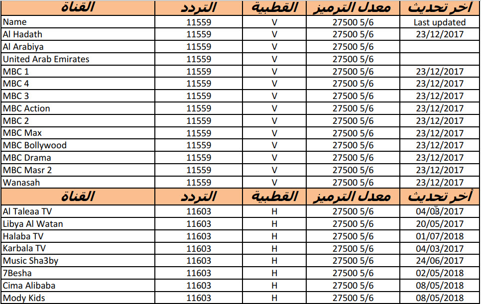 جميع ترددات النايل سات بتاريخ اليوم pdf أغسطس 2018 بأسماء القنوات كاملة